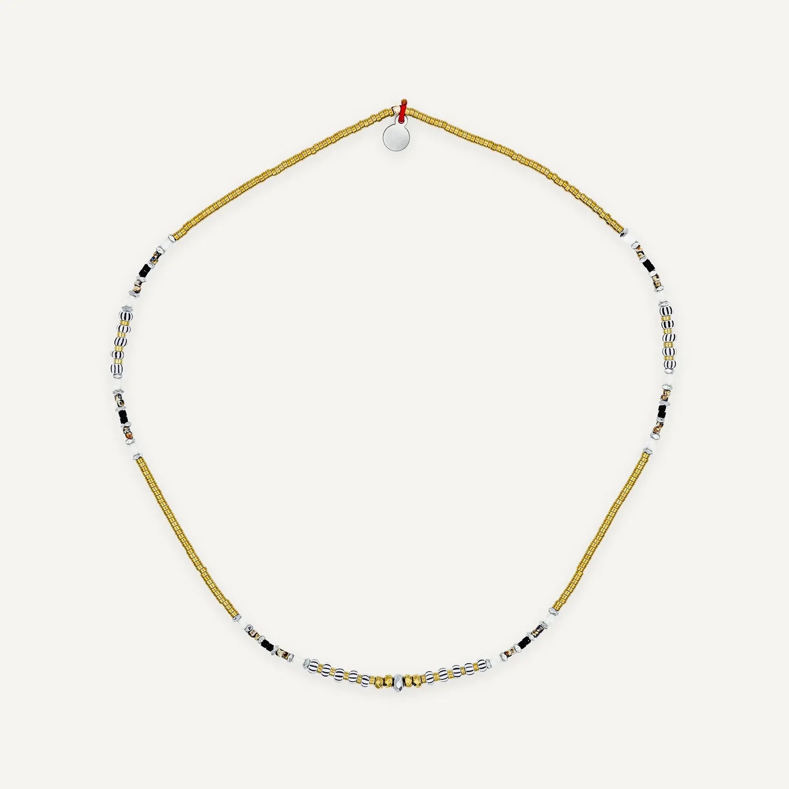 Le ALICE est un ras de cou composé d'Hématite Gold accompagnées de Rocaille.