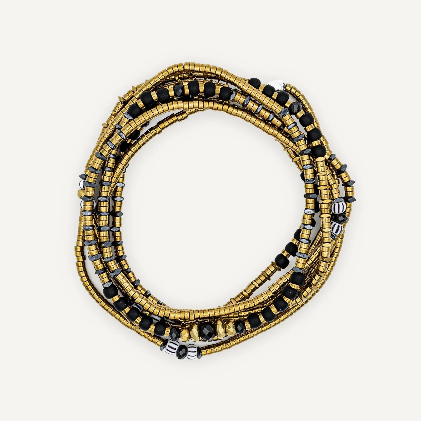 Monté sur un fil élasthanne ultra résistant, ce bijou peut se porter en collier ou bracelet 6 tours.