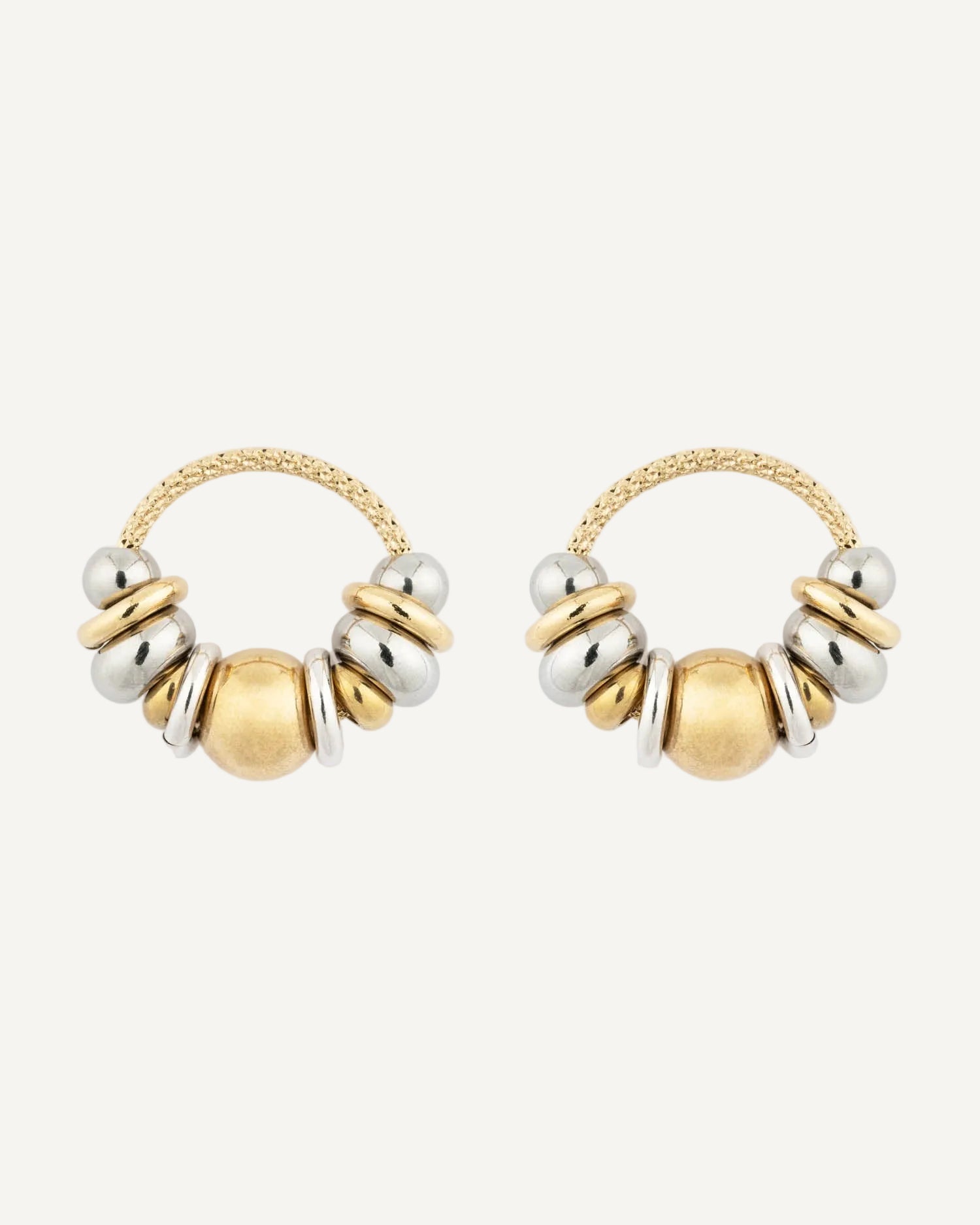 Les boucles d'oreilles Bubble Klik sont une pièce forte, graphique et moderne composée d'une grande perle et d'anneaux dorés et argentés. Un bijou pensé pour sublimer vos tenues, avec un style à la fois élégant et intemporel.