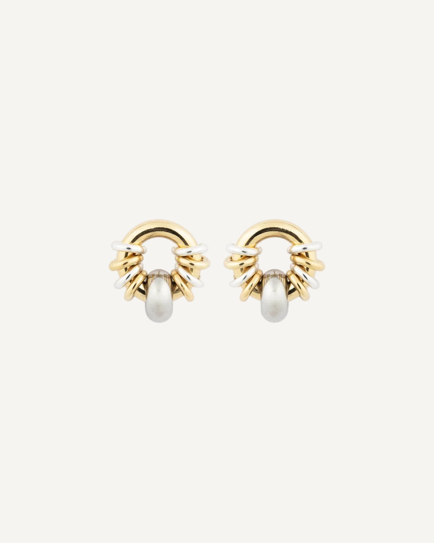 Discrètes mais affirmées, les boucles d'oreilles Donut Baby Or allient anneaux dorés sur une base argentée. Elles apportent une touche délicate lorsqu'elles sont associées à nos autres créations SIGAL.