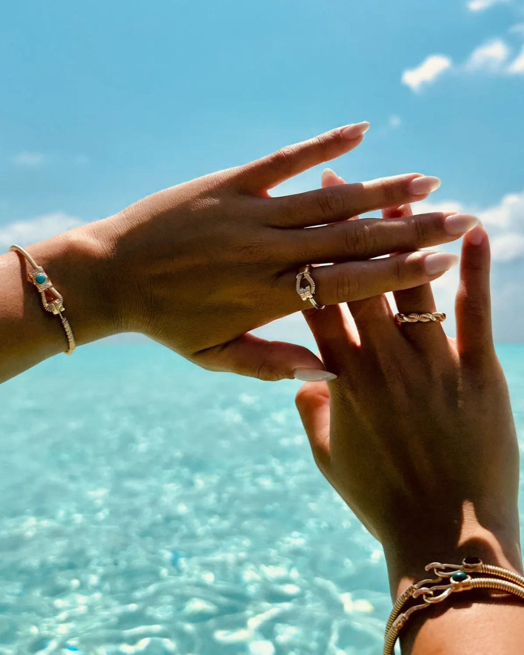 The "Hook" bracelet, made with bass strings and natural stones, is both elegant and artistic—an accessory that can add a unique touch to your style.
