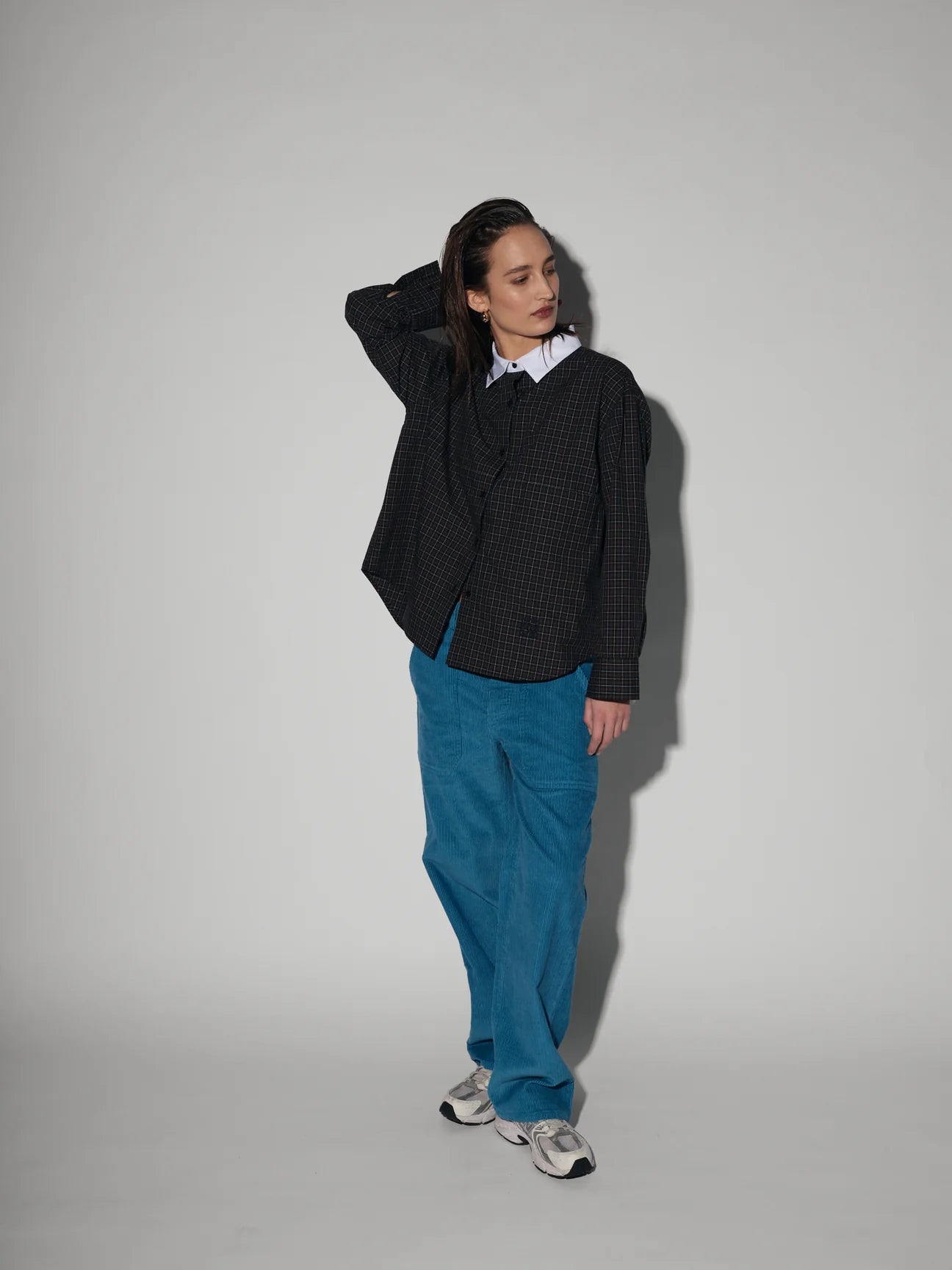 Col en popeline blanche et broderie poinçon ton sur ton en bas de vêtement.