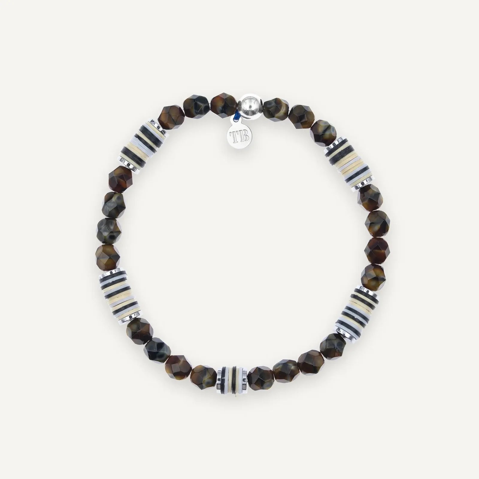 Le GENTLEMAN XL - Brun est un bracelet homme 1 tour composé de perles de Bohème facettées accompagnées de Heïshi Vinyles Africains.