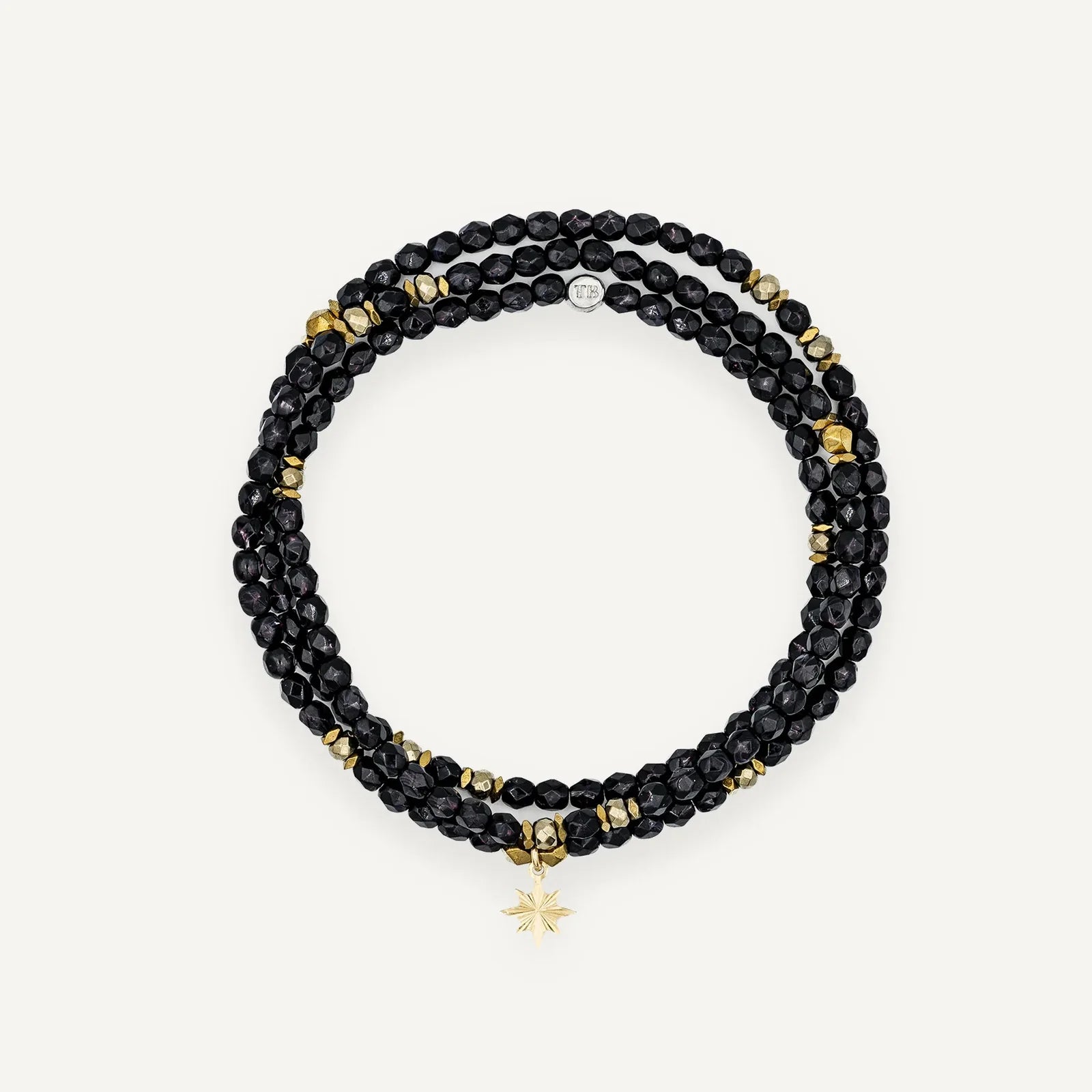 Composé de perles de cristal de bohème d'un noir profond aux reflets violet, le STARLIGHT - Midnight est accompagné d'un pendentif étoile doré à l'or fin.