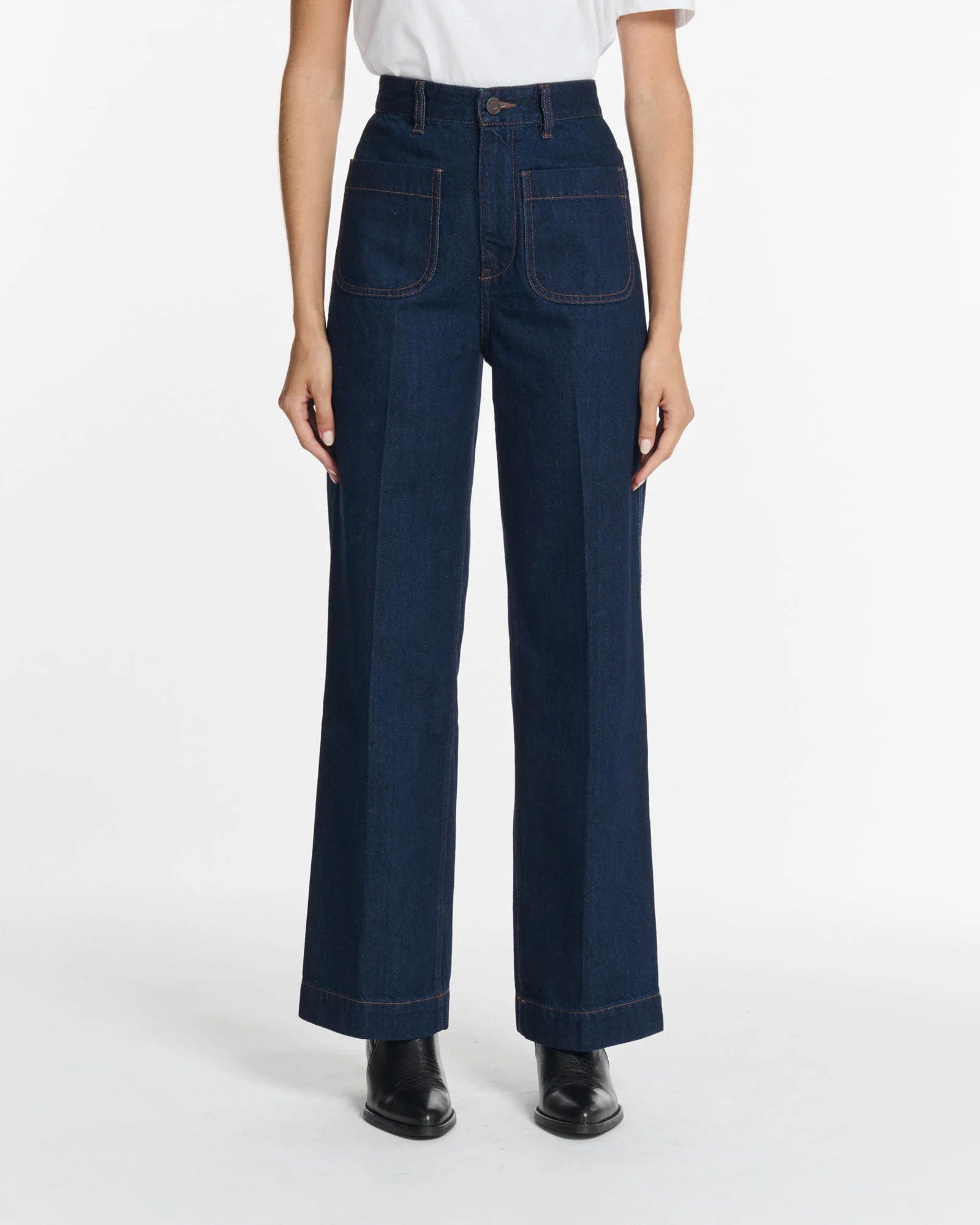 - Coupe taille haute jambe large très flatteuse pour élancer la silhouette
