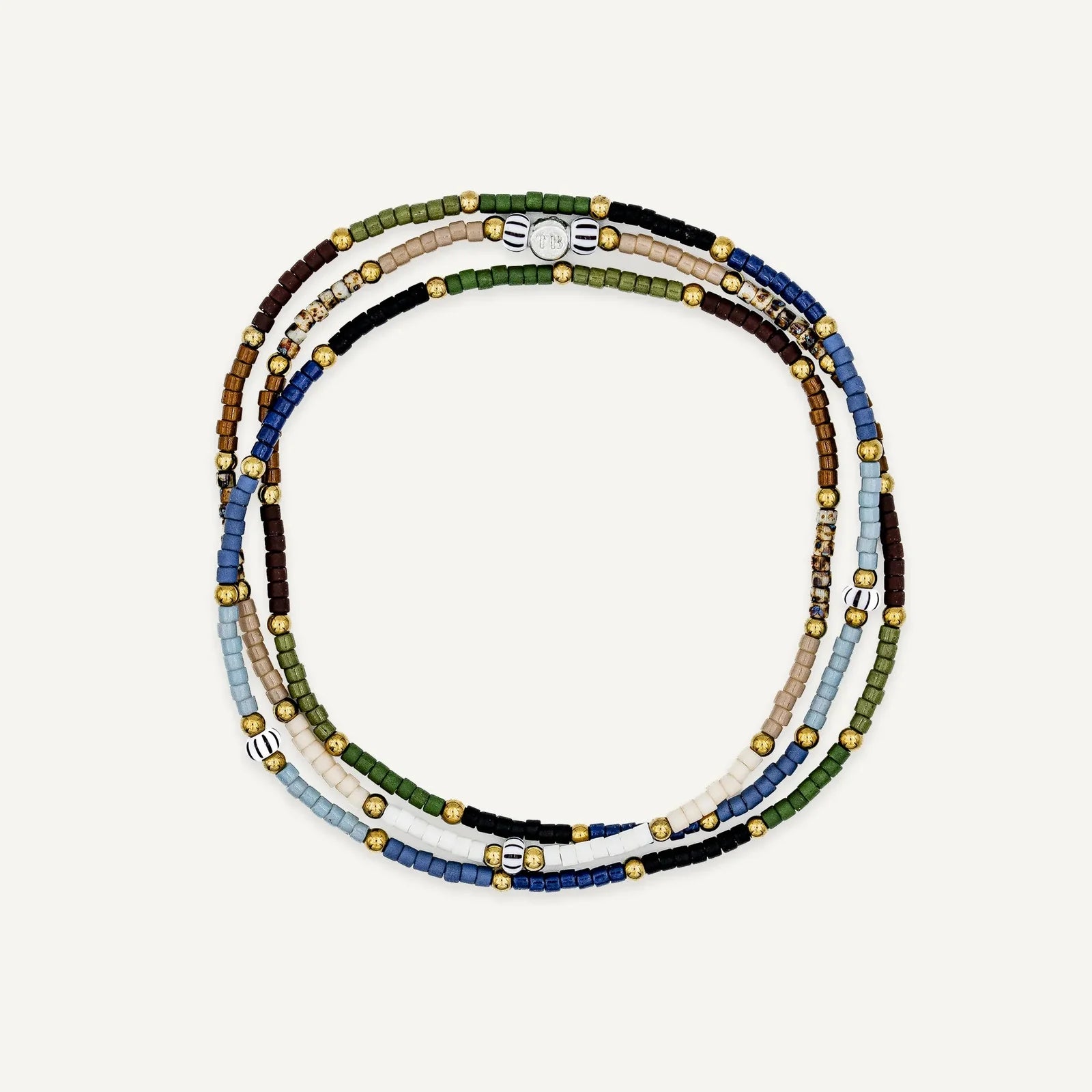 This jewel, inspired by this wealth, can be worn as a necklace or a triple-wrap bracelet, depending on your mood. It is composed of a delicate blend of ultra-fine pearls, gold hematite, and seed beads.