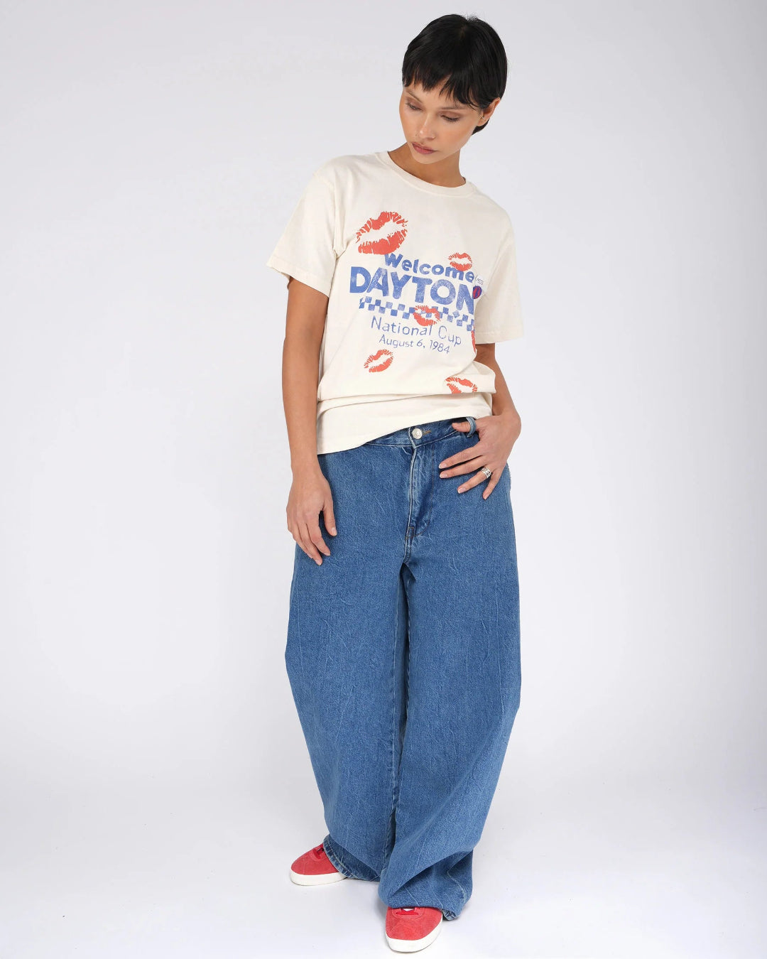 Les T-shirts imprimés dynamisent n’importe quelle tenue et se marient parfaitement avec des pièces plus habillées pour un look équilibré et féminin.