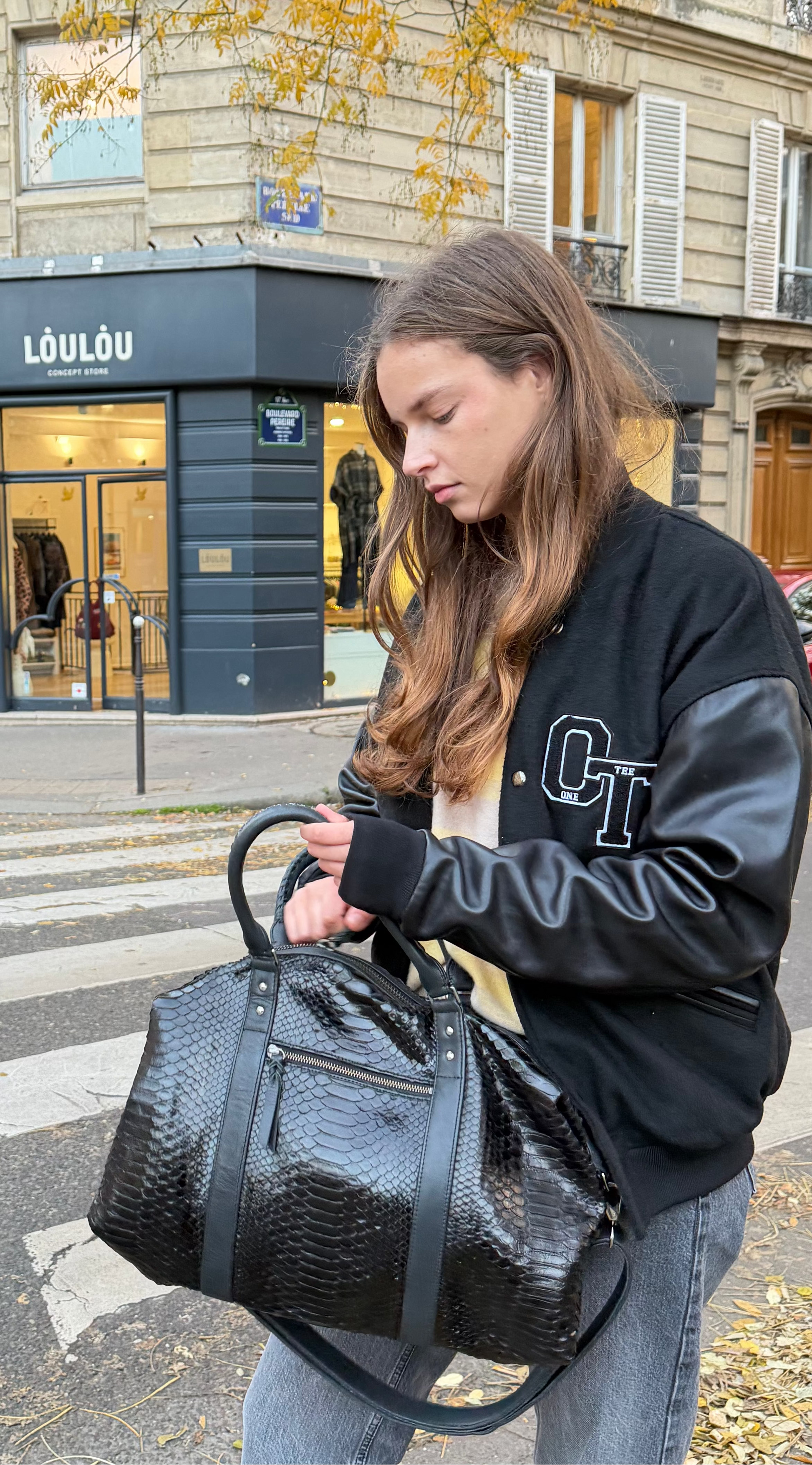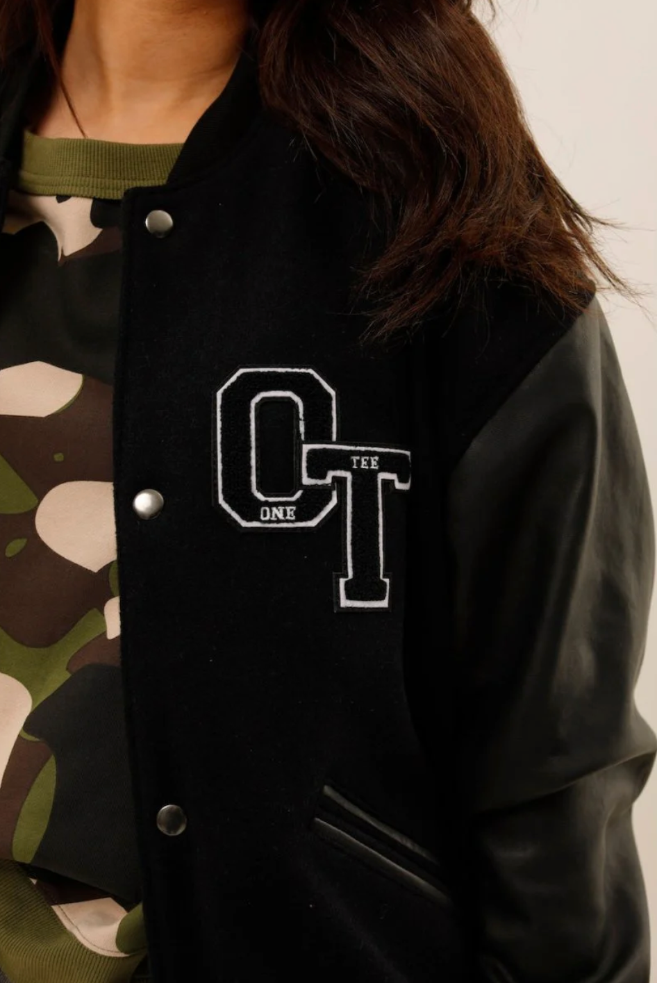 Le teddy TRIBECCA, modèle mixte, reflète l’ADN One Tee avec ses matières premium et ses détails affirmés. Manches en cuir d’agneau plongé, corps en laine noire et doublure imprimée cachemire bandana pour une pièce structurée et durable.
